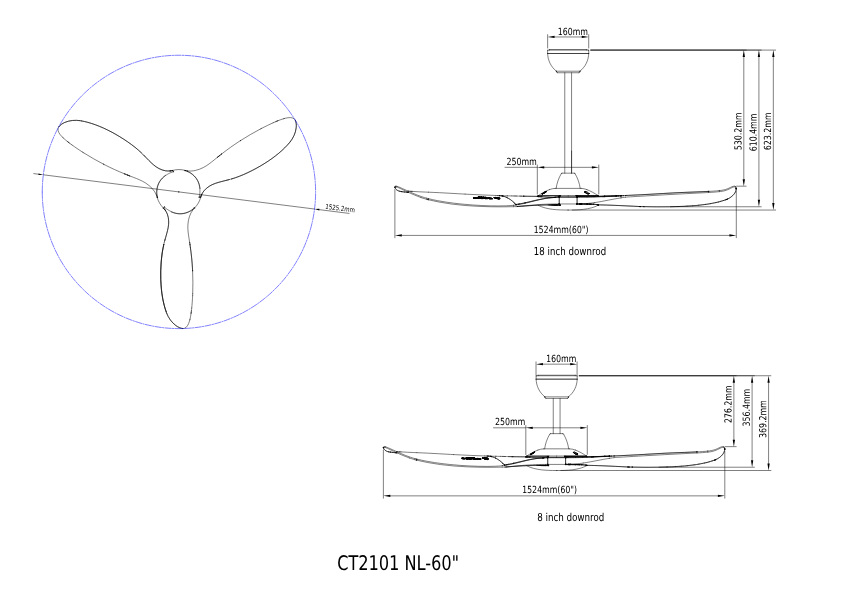 • מגיע עם מוט המתאים לתקרה סטנדרטית, במידה והתקרה גבוהה מ3.30 ניתן להזמין מוט הארכה בתוספת תשלום.