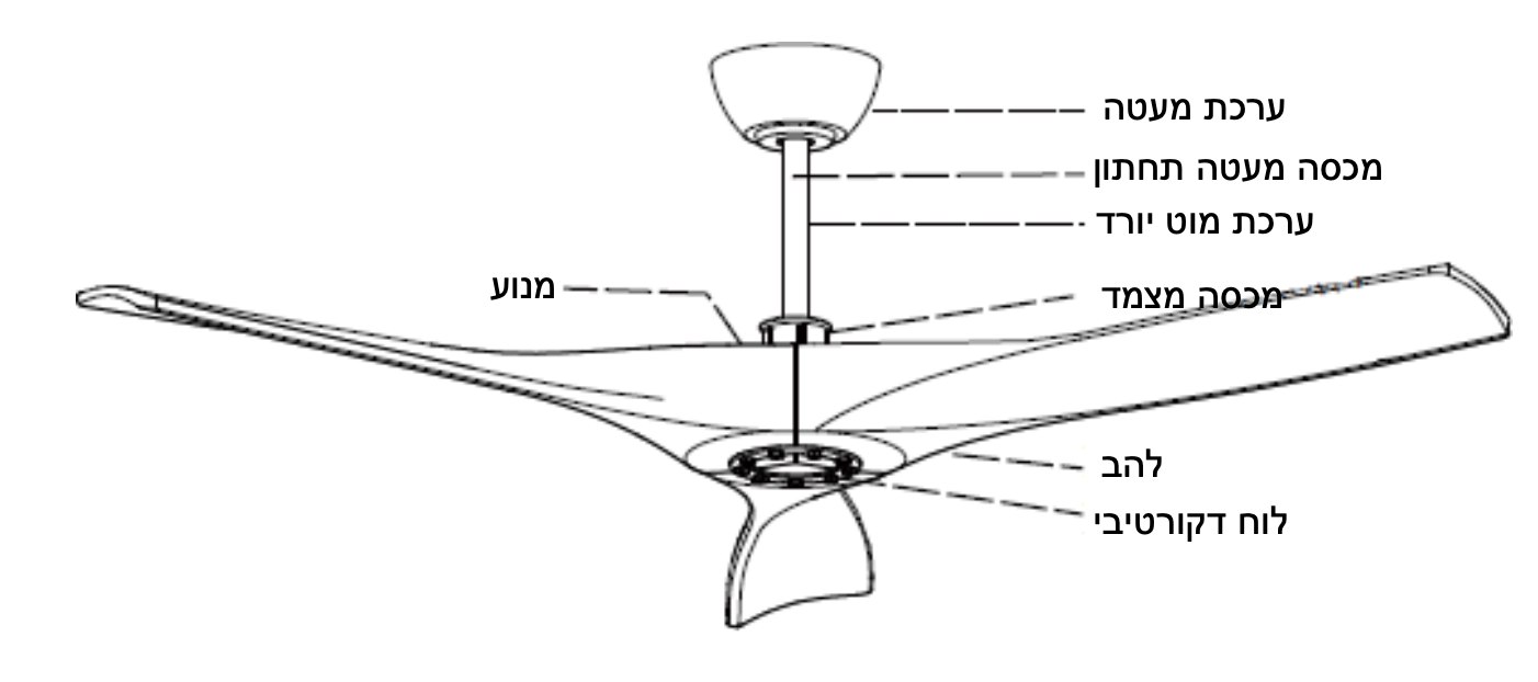 • מגיע עם מוט המתאים לתקרה סטנדרטית, במידה והתקרה גבוהה מ3.30 ניתן להזמין מוט הארכה בתוספת תשלום.